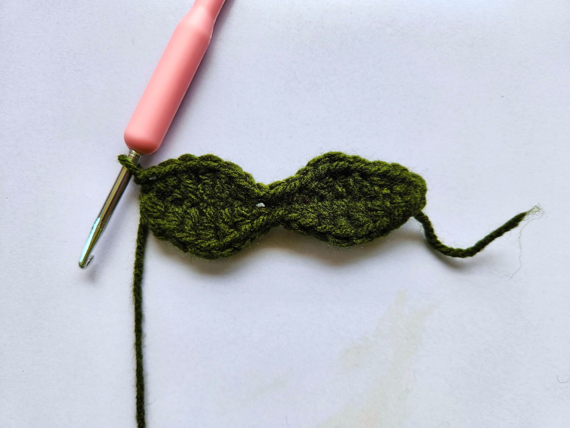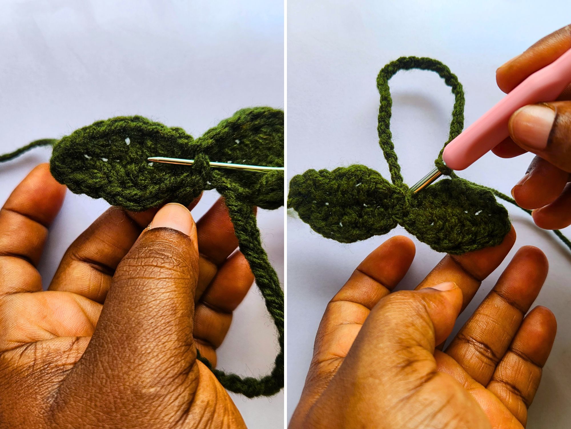 Once complete, you’ll have a flexible base that allows the leaf to curve naturally as stitches increase and decrease in height.