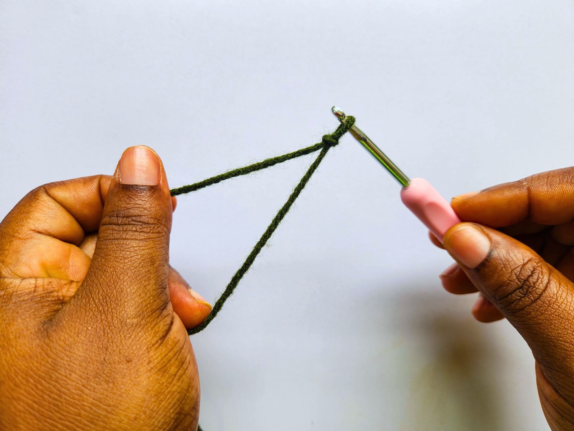 Start by holding the yarn correctly in your left hand and forming a slip knot on your hook.