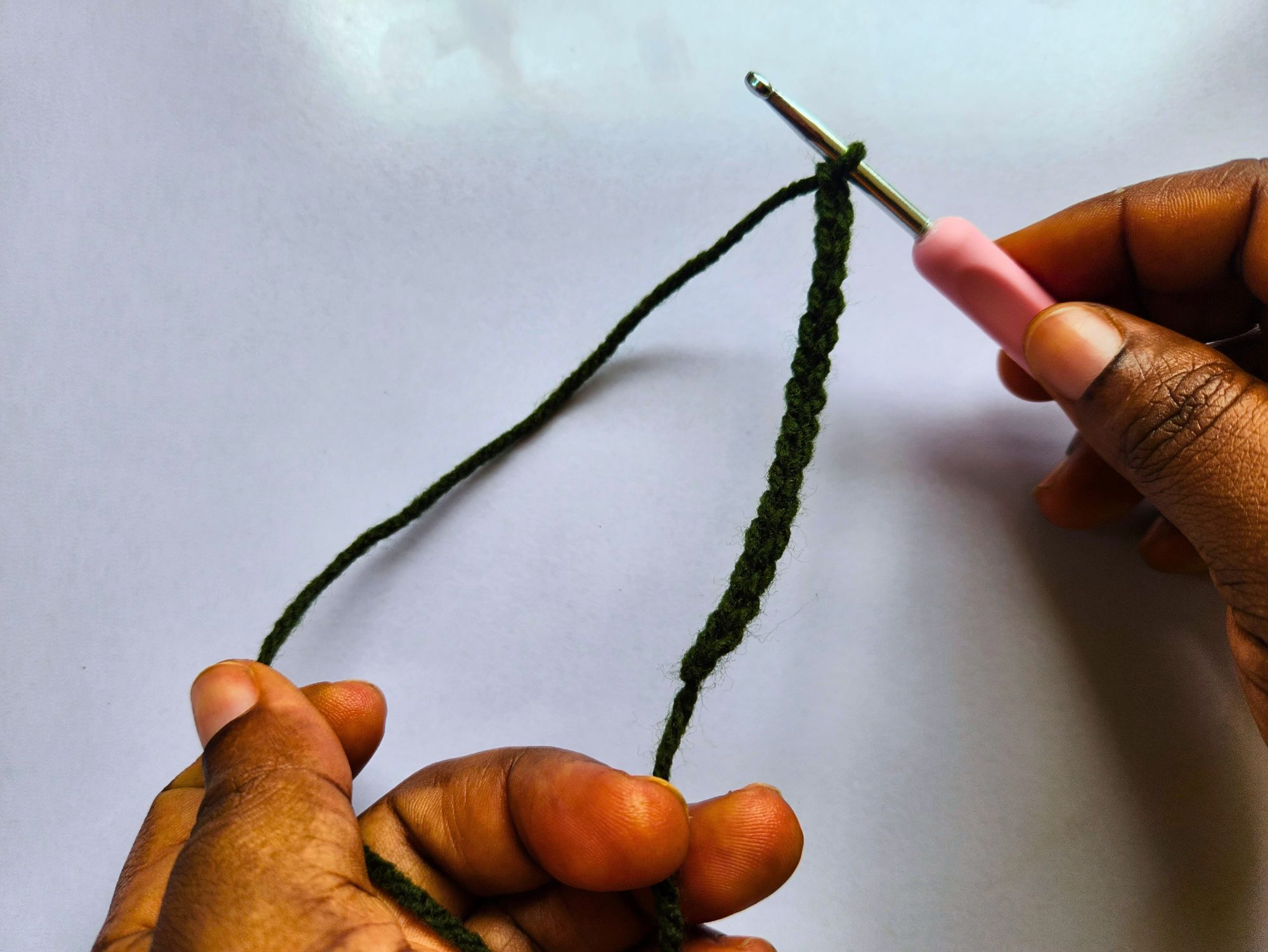 - Crochet 30 chain stitches, keeping them even and relaxed.